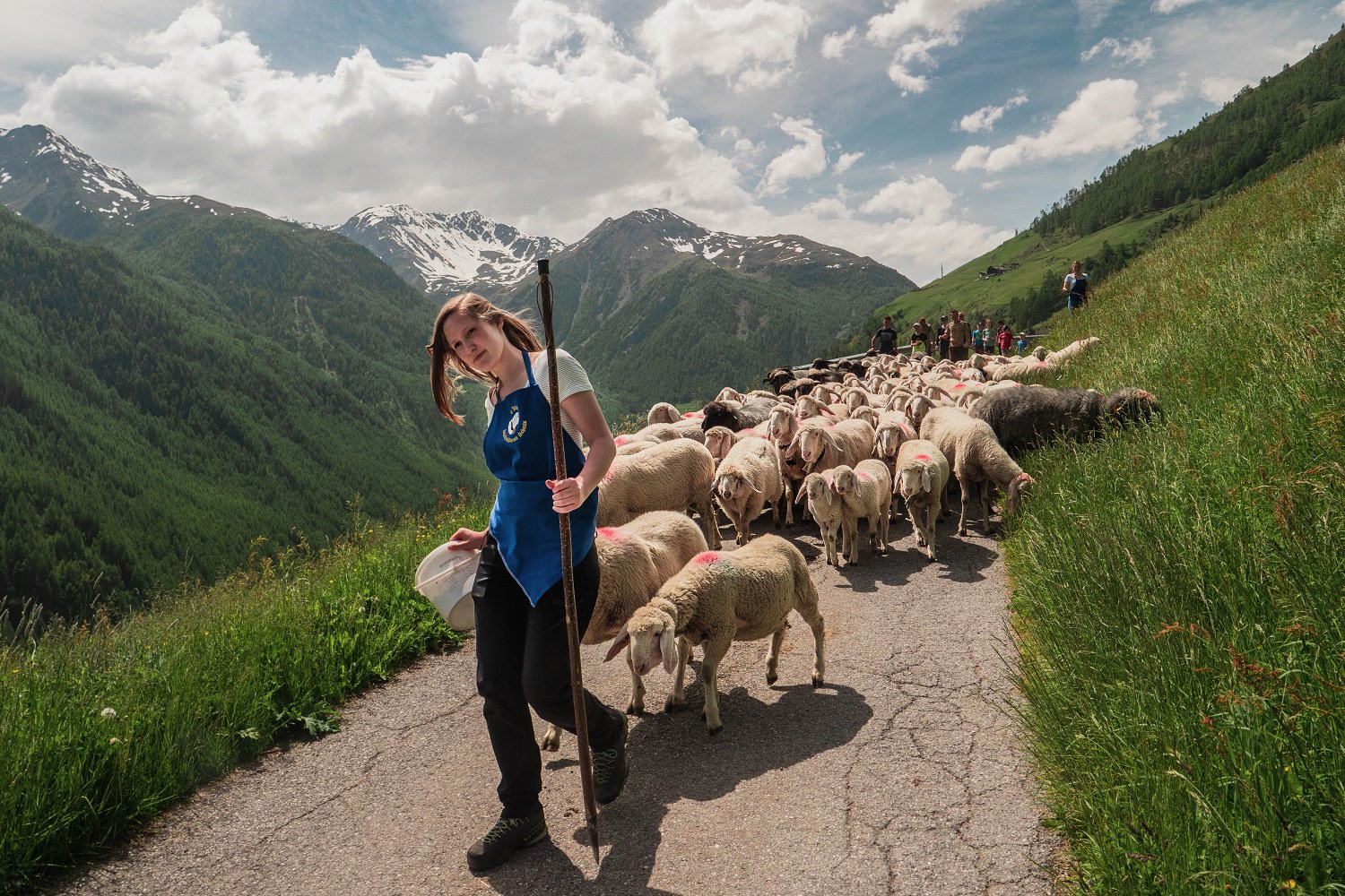 Mit der elfjährigen Tochter den Bauern beim traditionellen Schafübertrieb vom Ötztal ins Südtiroler Schnalstal helfen? O ja, das geht, wobei sich die Tochter am Ende geschickter anstellen wird als die Eltern.