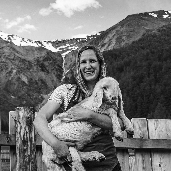 In einer Senke entdecken wir ein kohlrabenschwarzes Lämmchen, es ist noch mit Blut und Schleim verschmiert, seine Mutter brachte es hier auf die Welt, in Panik, die Herde zu verlieren, ließ sie ihr Junges im Stich. So werden Carla, Paula, Eva und Magdalena zu Retterinnen. Carla nimmt das kläglich meckernde Knäuel in den Arm, wo es sich rasch beruhigt, nach einiger Zeit sogar am hingehaltenen Finger zu saugen beginnt, die 27-jährige Bauerntochter weiß, was in solchen Fällen zu tun ist. Abwechselnd tragen die drei Schwestern das Lämmchen ins Tal, auch Magdalena darf den Schützling wie ein Baby im Arm wiegen.