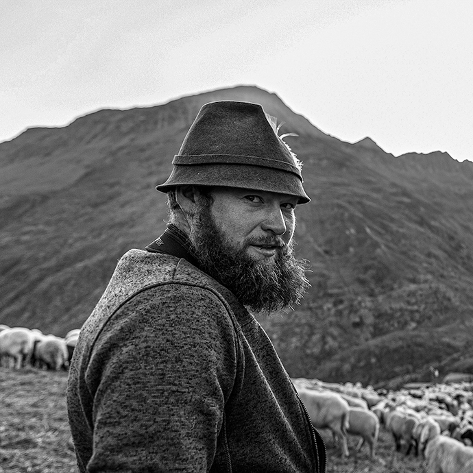 Erst recht im Vergleich zu den Schaftreibern. Wettergegerbte, wortkarge Männer, die auf dem Parkplatz rauchend herumstehen. Sie stecken in klobigen Bergstiefeln und schmutzigen Jeans, um die Bäuche spannen sich blaue Schürzen mit dem Emblem des Schafzuchtvereins Schnalstal. Die Treiber stützen sich auf kinnlange, an der Spitze eisenbewehrte Holzstöcke, speckige Haselnussstecken, die wie das Outfit der Männer starke Gebrauchsspuren aufweisen. Mit den Treibern sind wir zum traditionellen Schafübertrieb vom Ötztal ins Schnalstal verabredet. Wir dürfen mithelfen, die Tiere, die im Juni dieselbe Strecke zu ihren traditionellen Weidegründen über den Niedertalferner sowie die 3017 Meter hoch gelegene Similaunhütte bewältigt haben, retour in ihre Ställe in Südtirol bringen. „Natürlich könnten wir die Tiere mit Lastwagen ins Ötztal und retour fahren, aber es geht um die alten Bräuche“, sagt Josef Götsch, Obmann der Alminteressentschaft Niedertal, der den jährlichen Treck organisiert. Dass das aber viel teurer wäre, erwähnt er nicht.