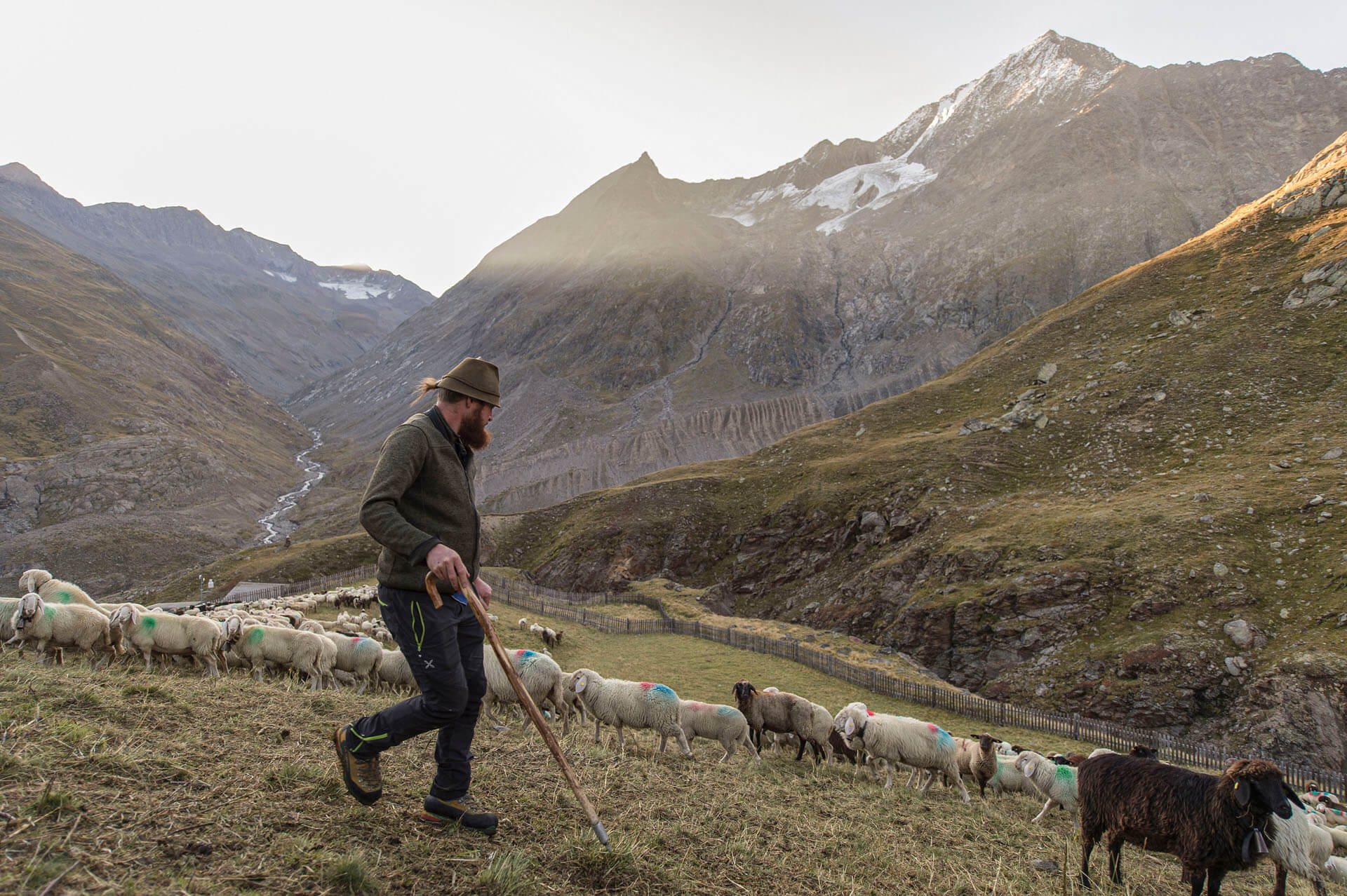 Manuel Götsch wuchs im Schnalstal auf und war von klein auf in die landwirtschaftlichen Tätigkeiten der Familie eingebunden. Schon früh entwickelte er eine Leidenschaft für die Natur und die Tiere, die ihn schließlich dazu führte, den Beruf des Hirten zu ergreifen. Er übernahm die Verantwortung für die Pflege und das Wohl der Herden, die während der Sommermonate auf die Hochalmen getrieben werden. Diese Praxis der Transhumanz ist eine zentrale Tradition in der Region, bei der das Vieh in den wärmeren Monaten auf höher gelegene Weiden gebracht wird, um das frische Gras zu nutzen, und im Winter in die Täler zurückkehrt.