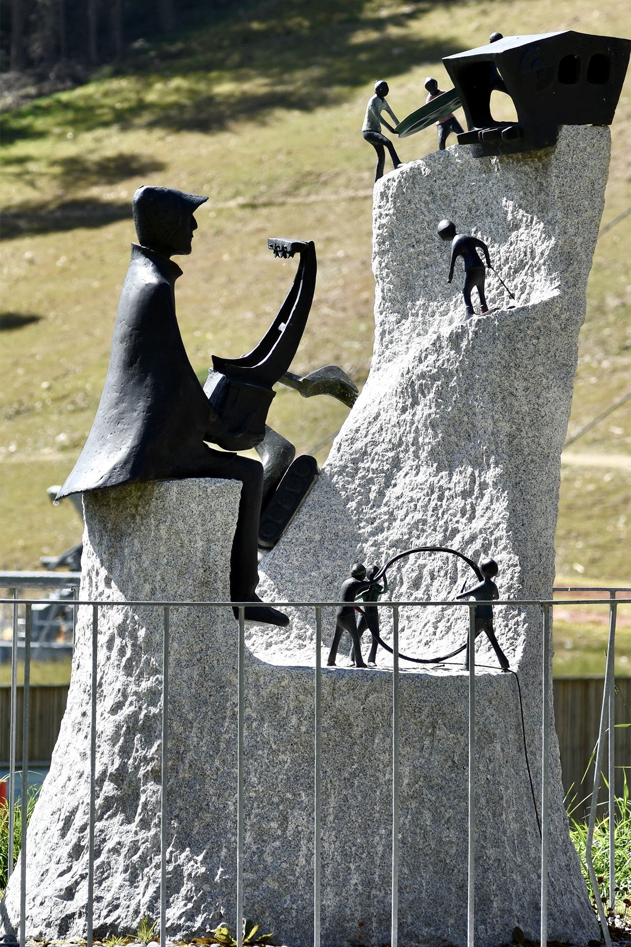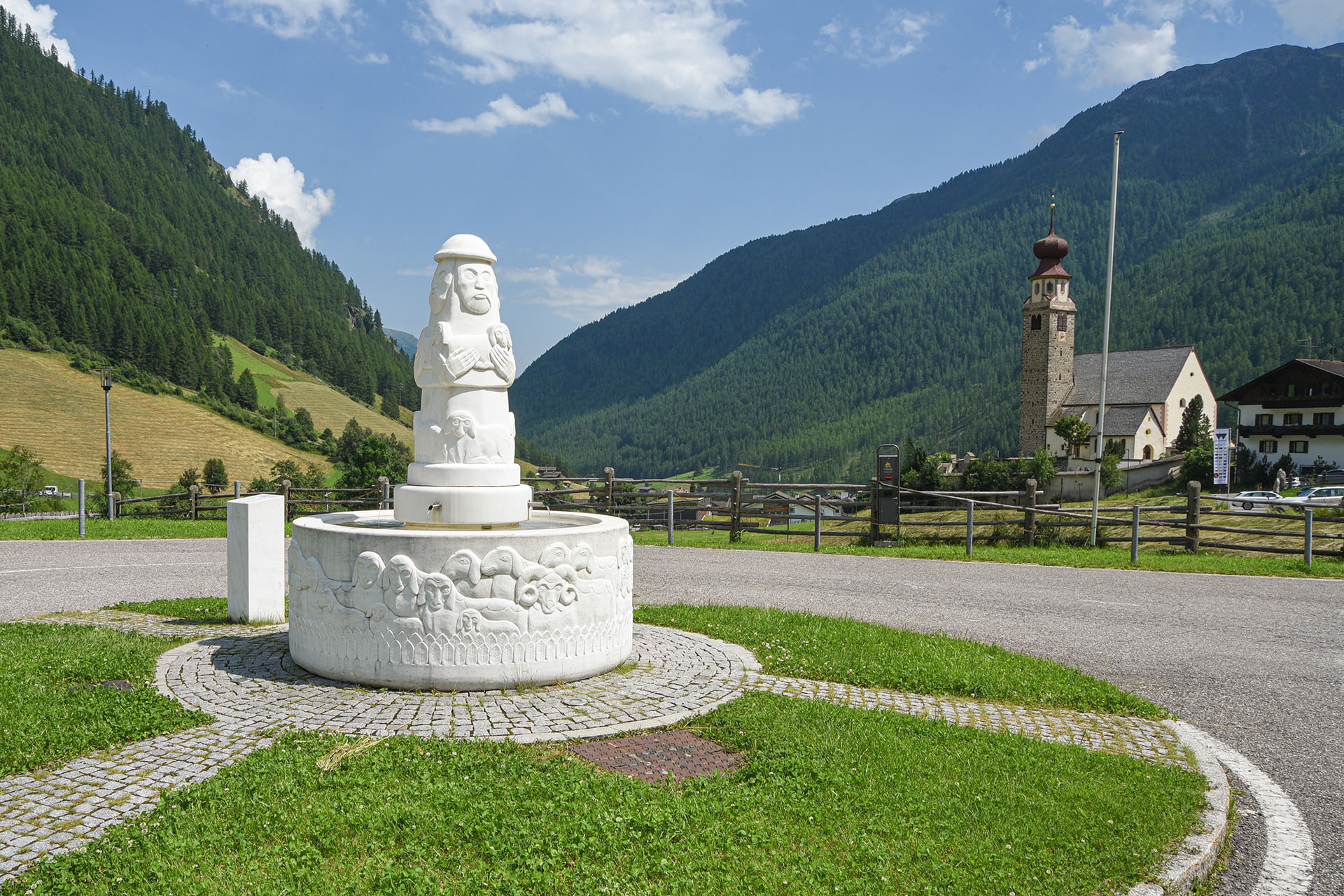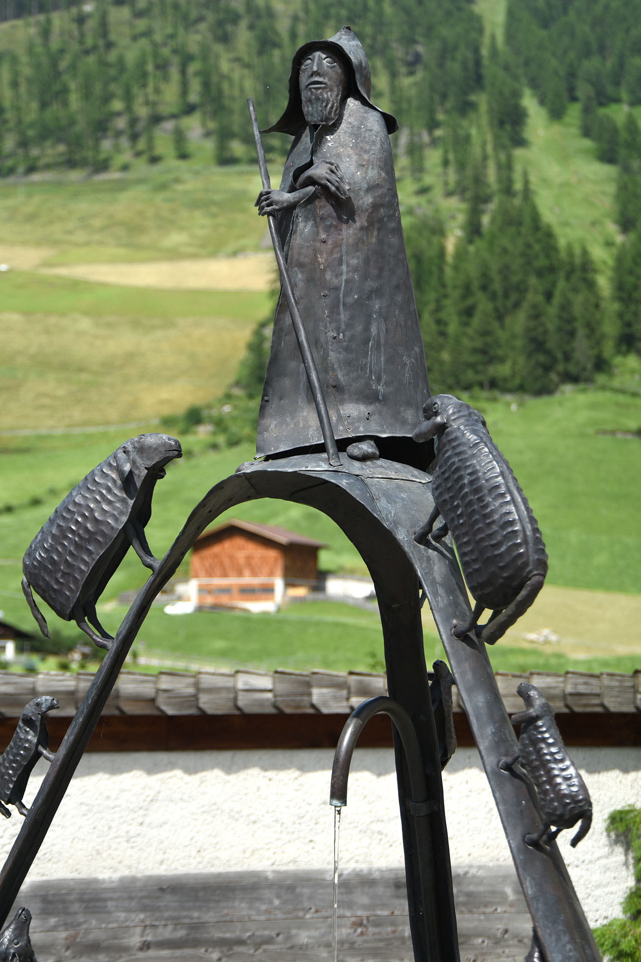 Ein roter Faden, der vielleicht nicht immer erkennbar ist, verbindet seine Werke mit seinen Jugenderfahrungen: Ich denke an die Figuren, die seine Krippen beleben, die reich an kleinen Details sind und die, obwohl sie von seiner akademischen Erfahrung beeinflusst sind, die Wurzeln seines Heimattals beibehalten. Diese unzähligen Figuren und Situationen erinnern in dreidimensionaler Form an bestimmte Gemälde von Hieronymus Bosch; kurz gesagt, Martin Rainer ist ein Geschichtenerzähler ersten Ranges. Sein berühmtestes Werk ist zweifellos der monumentale Lebensbrunnen auf dem Brixner Domplatz. Auf dem mit Wasser gefüllten Marmorbecken, dem Symbol des Lebens, ruht eine elegante, schraubenförmige Bronzepyramide, die mit allegorischen Figuren geschmückt ist. Ein weiterer Brunnen vor der Schnalstaler Pfarrkirche zeigt den guten Hirten umgeben von seinen Schafen, und in diesem Fall ist der Rahmen des Werks die alpine Landschaft seines Heimattals. Schafe, Hirten, Bergsteiger, Jäger und Beute: ein Mikrokosmos, gesehen mit profundem Wissen und einem Hauch von Ironie, sind seine Lieblingsthemen.