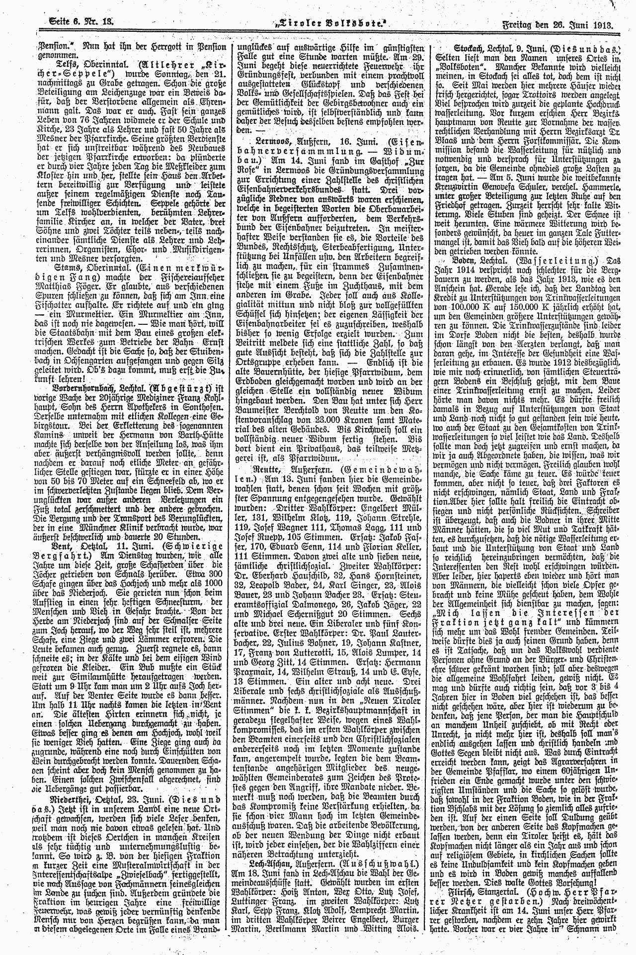 Aus: Tiroler Volksbote, Freitag, den 26. Juni 1913, Seite 6